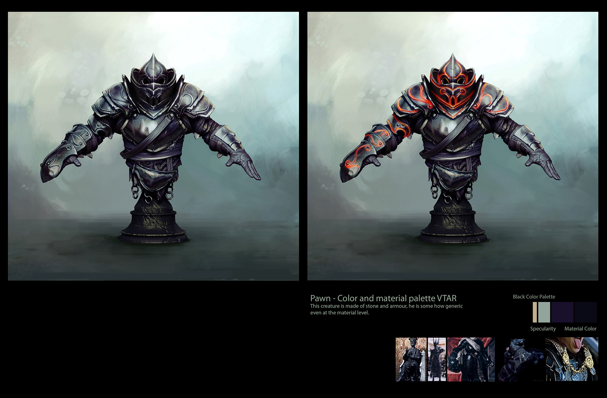 This is the visual concept exploration for the battleground and different factions, with art by Derek Stenning.
