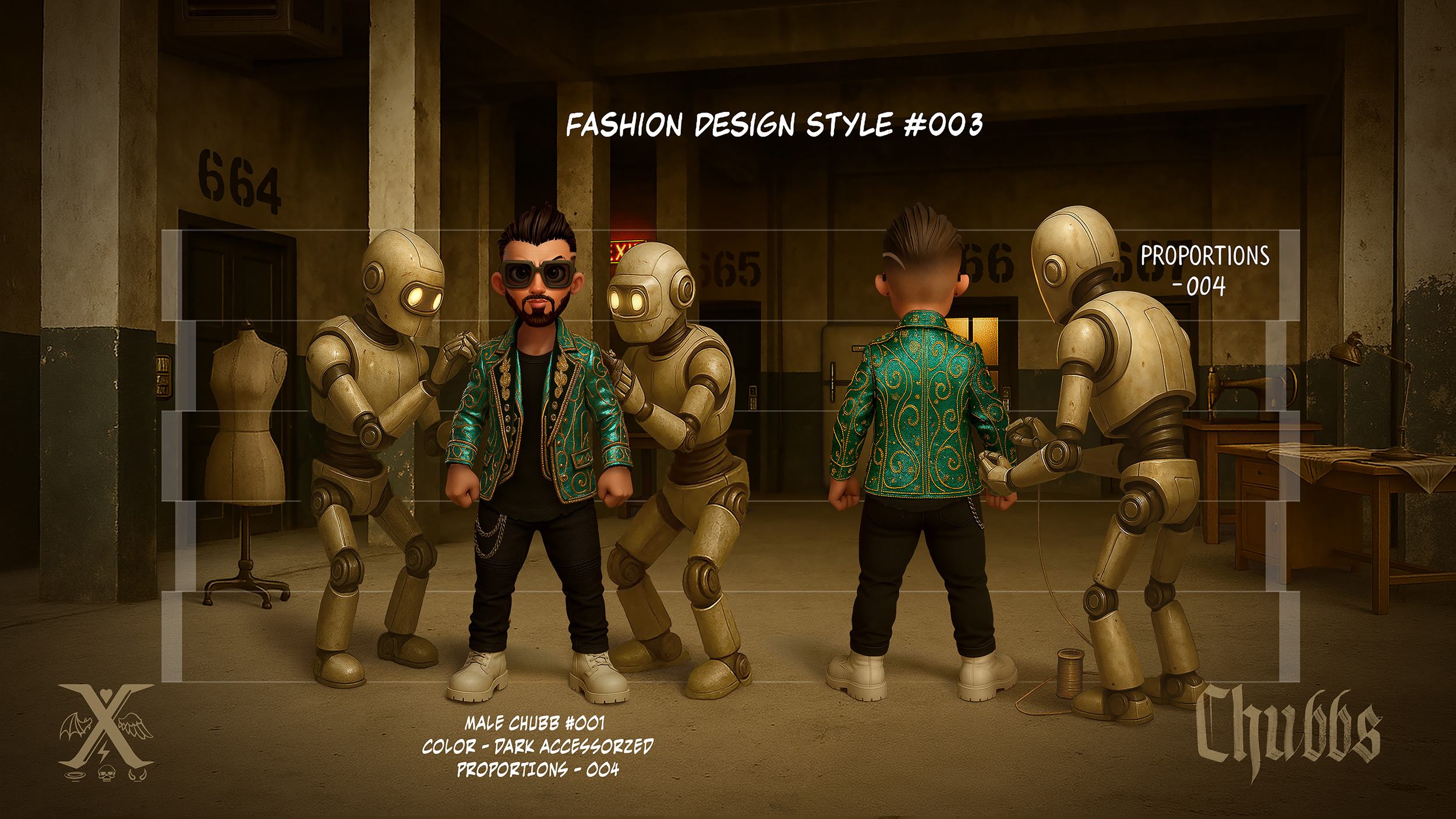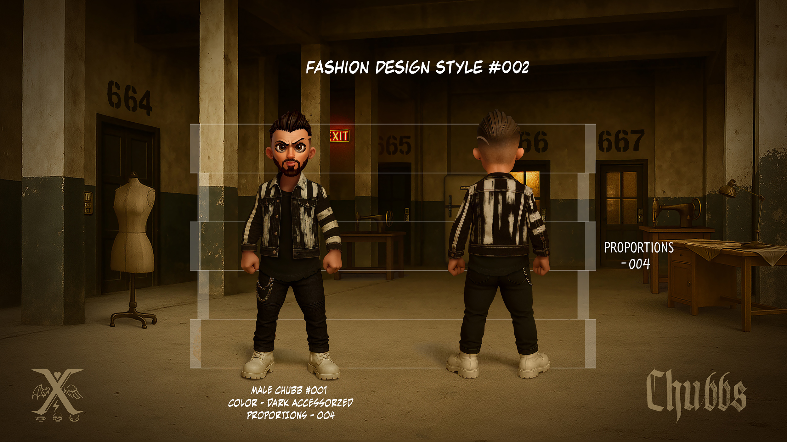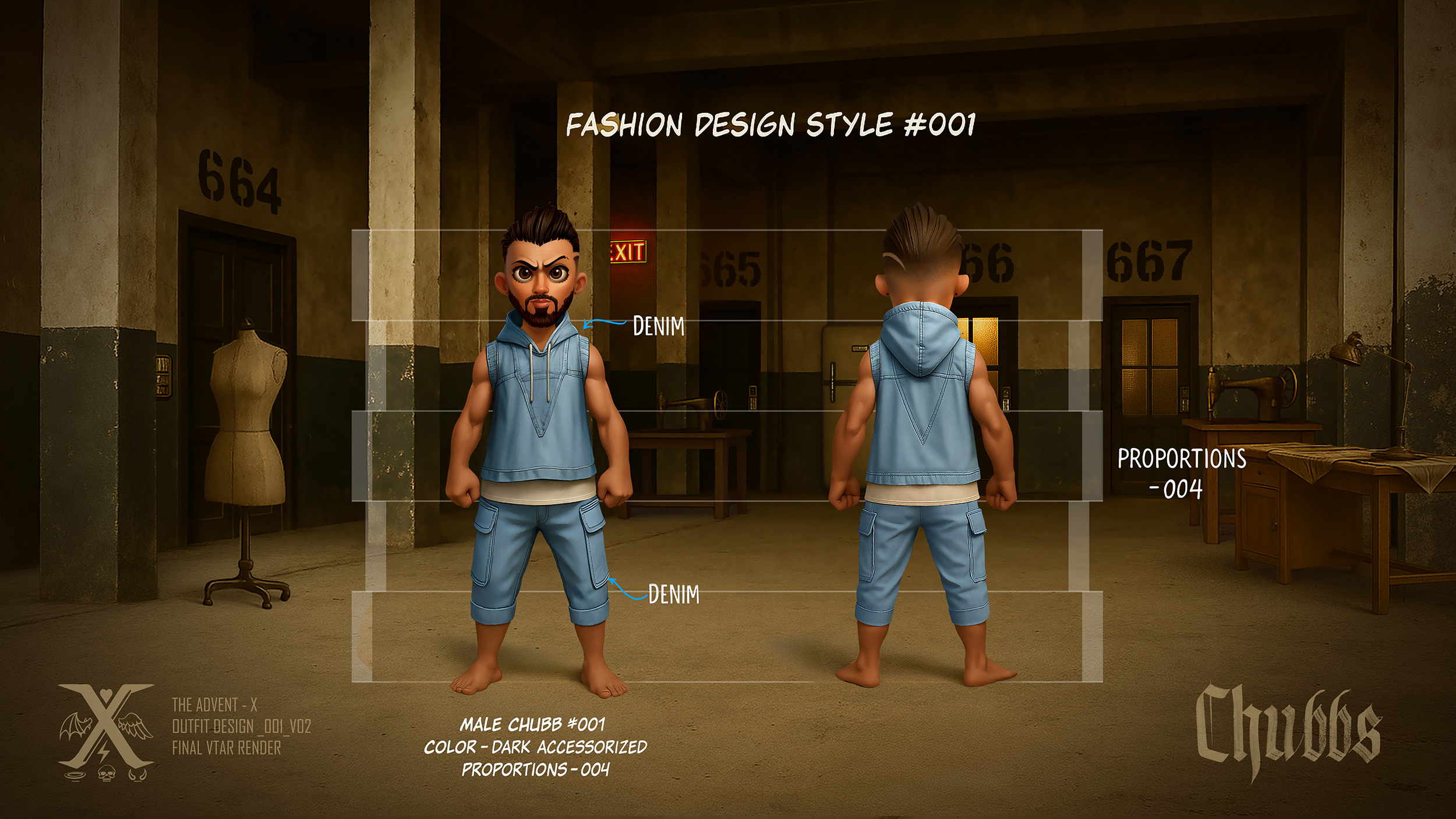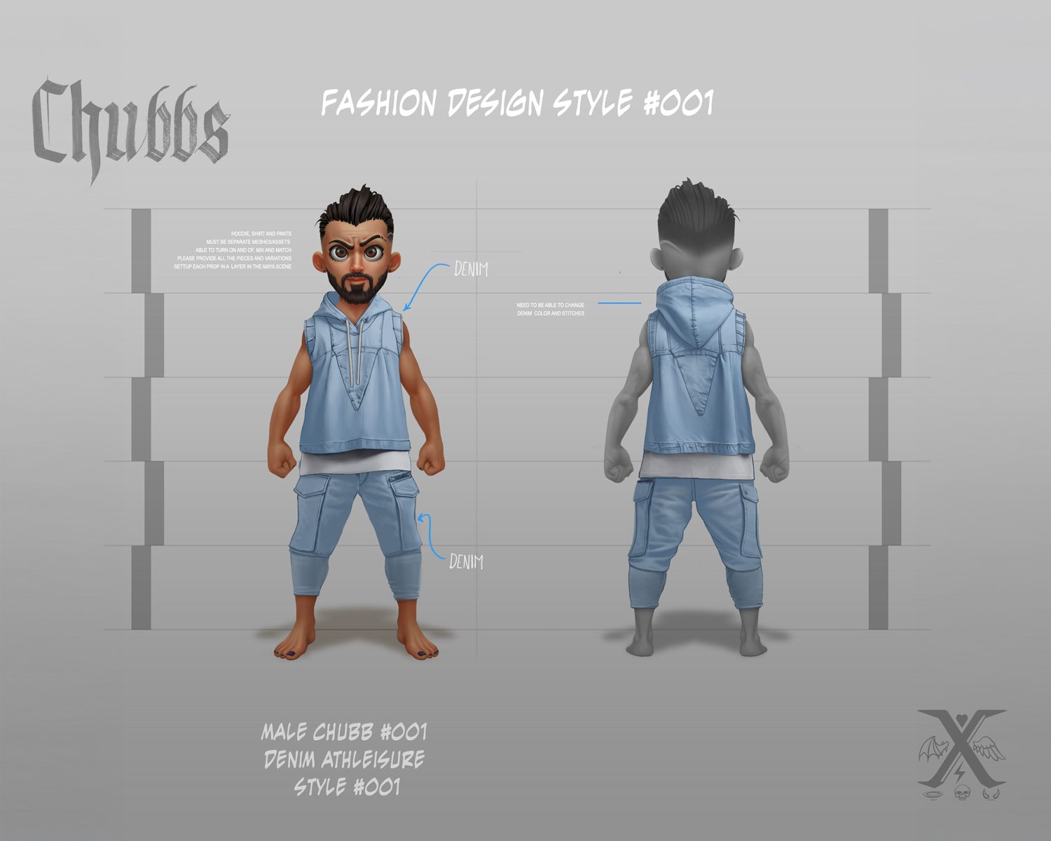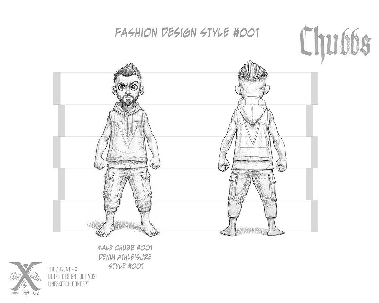 These are some fashion design outfits I created for the Advent Universe characters “The Chubbs” you can see my process form sketch to final design VTAR.