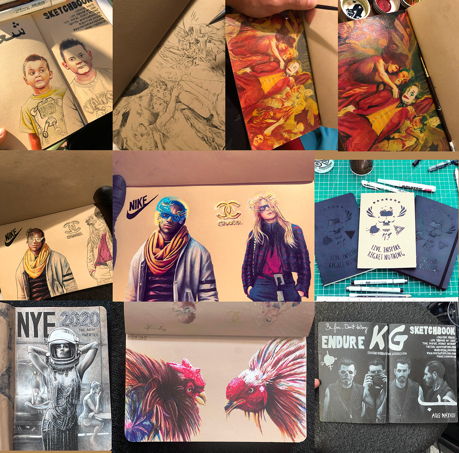A glimpse into the pages of my sketchbooks—stories, studies, and ideas captured in pencil, ink, and color. In a world dominated by digital tools, I still believe in the value of creating by hand. As my university teacher used to say: