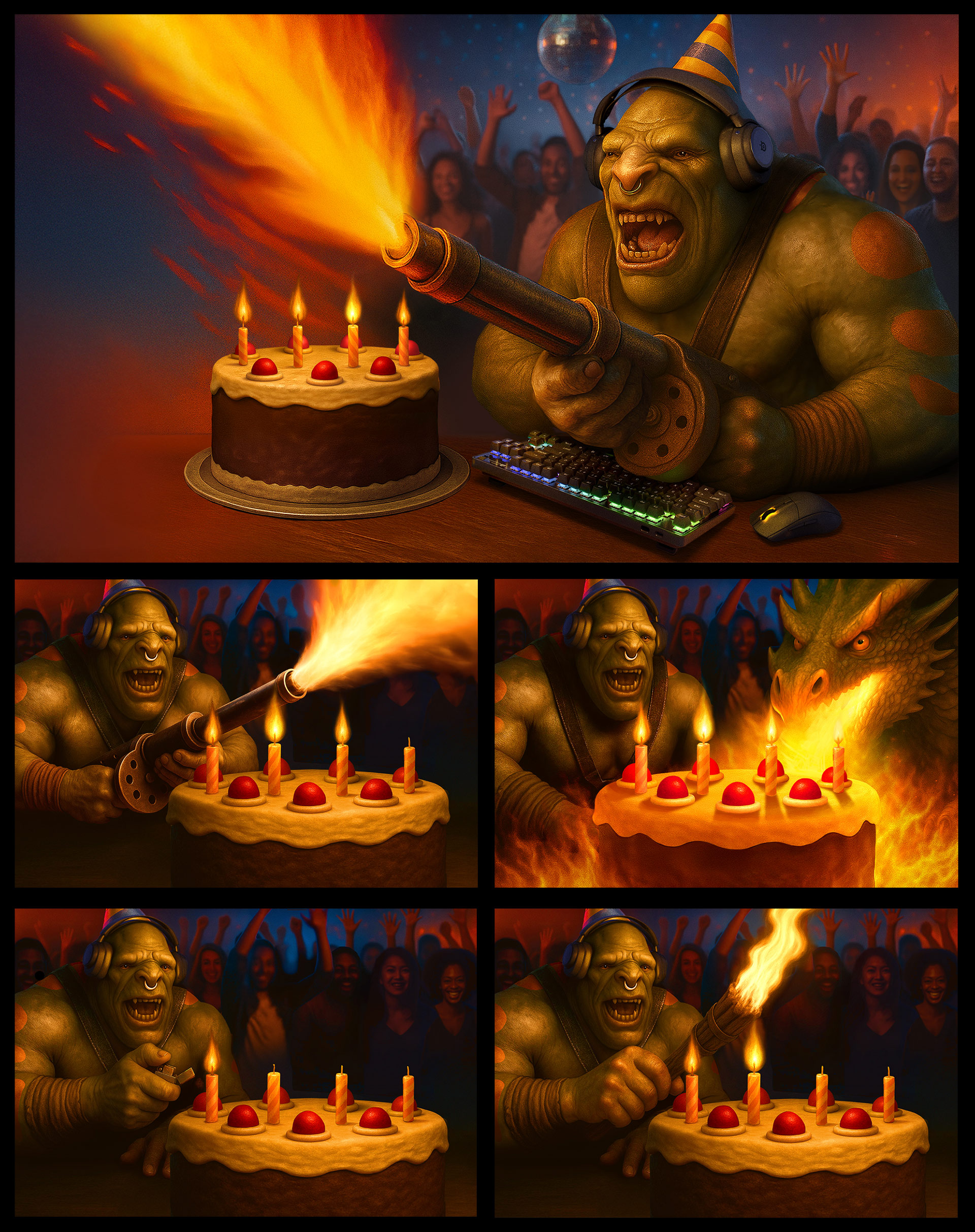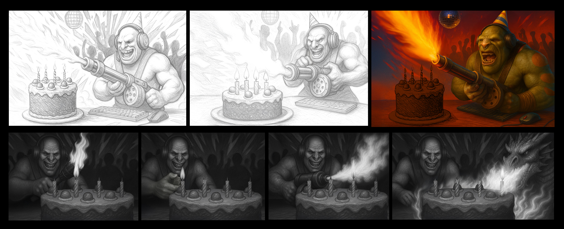 I was commissioned by One Net for Steel Series to create this illustration, which became the final image for the campaign. The final artwork is a mix of elements from my original explorations and a render of Lars (the character) that the client provided.